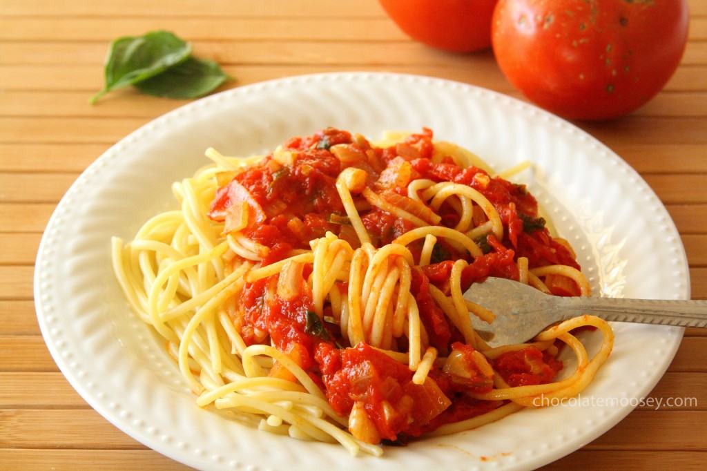 อาหารจานนี้เป็นอีกหนึ่งอาหารที่หลายคนนึกถึงเมื่อพูดถึงอาหารอิตาลี เส้นสปาเก็ตตี้ในซอสมะเขือเทศ สามารถเลือกเครื่องใส่เพิ่มได้หลากหลาย ไม่ว่าจะเป็น Meatball, เห็ด, บล็อกโคลี่, ไส้กรอก, เนื้อ สปาเก็ตตี้ในซอสมะเขือเทศจัดว่าเป็นอาหารที่ไม่แพง ทำได้ง่ายทุกที่ทุกเวลา